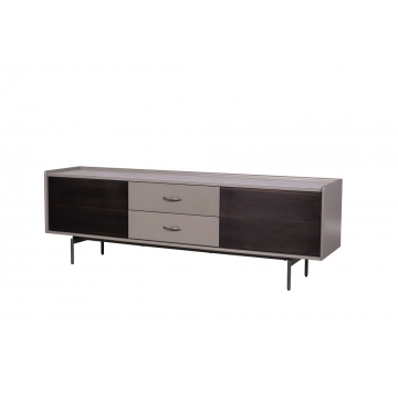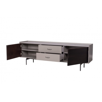 普佩石巖板面板+石色啞光主體+煙熏木皮門板+金屬深灰色金工件