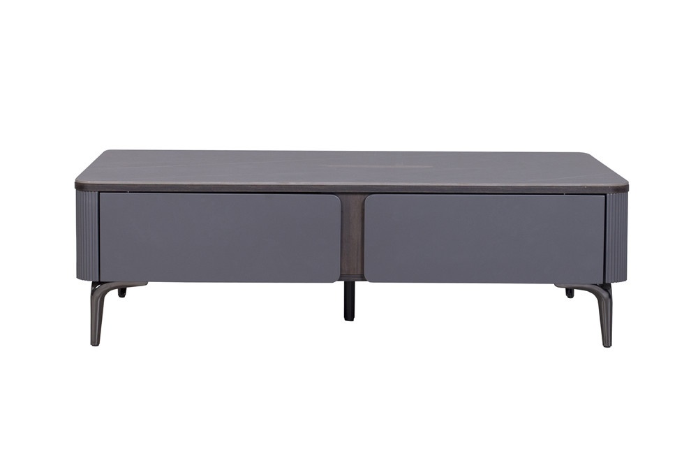 特洛伊灰巖板面板+灰色啞光主體+煙熏木紋裝飾條+槍色金工腳