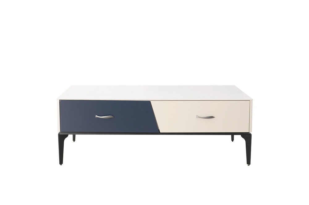 卡塔金巖板+米灰啞光主體+靛藍啞光抽面+灰色拉手+黑啞光金工腳
