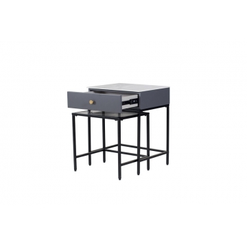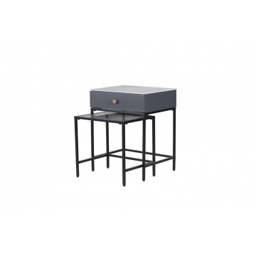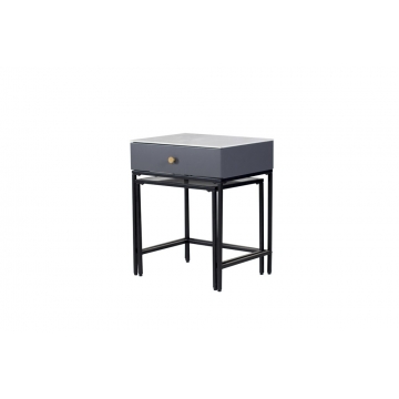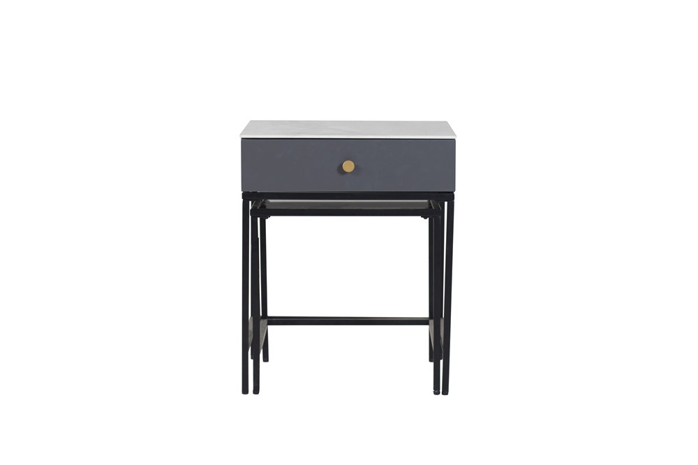 黑啞光金工腳+拉手黃銅色金工件+底板+陶瓷下墊板+背板灰色啞光三聚氰胺板(PB)+抽盒淺灰布紋三聚氰胺板(PB)+右側板+左側板+抽面板灰色啞光(MDF) CT-0064B 金工腳黑啞光+煙灰色鋼化玻璃