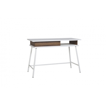白亮光主體+暖白三聚氰胺板底板+微麻胡桃三胺板側板+白啞光金工件